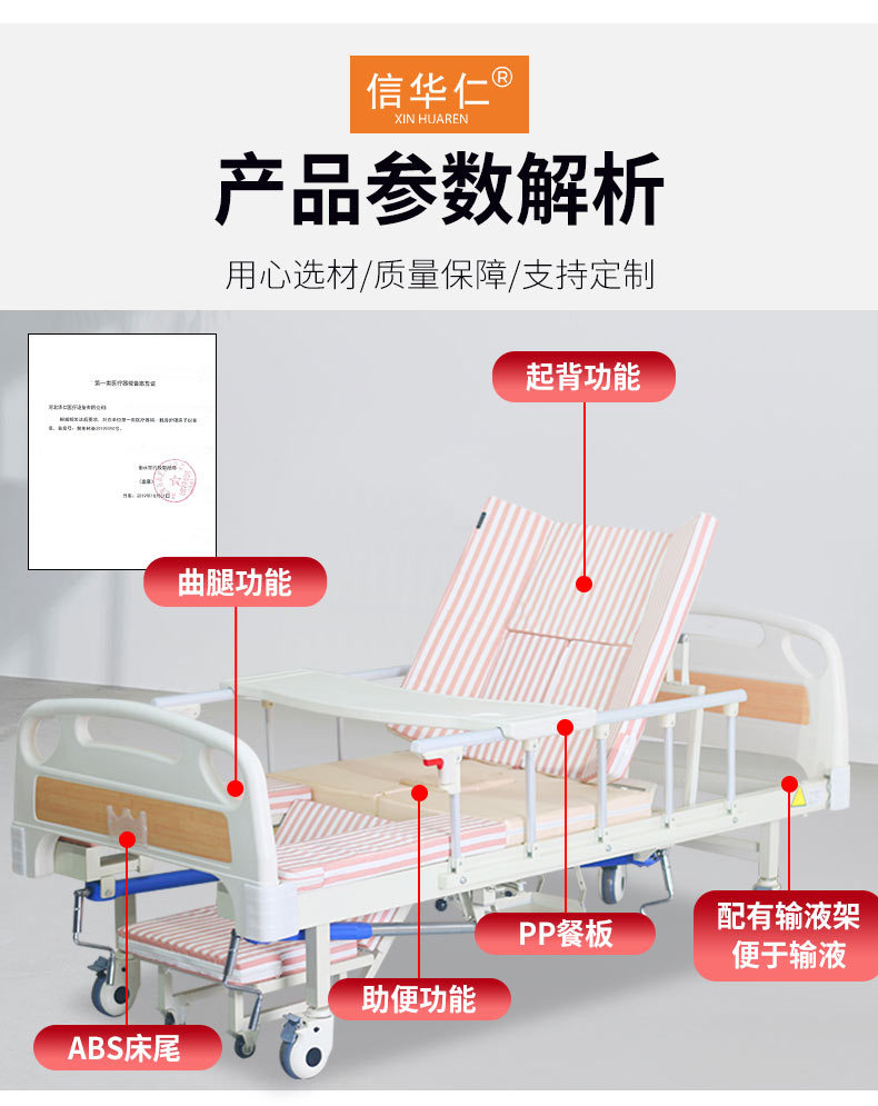 標準配置:ABS床頭1副;鋁合金折疊護欄1副;靜音輪4個;