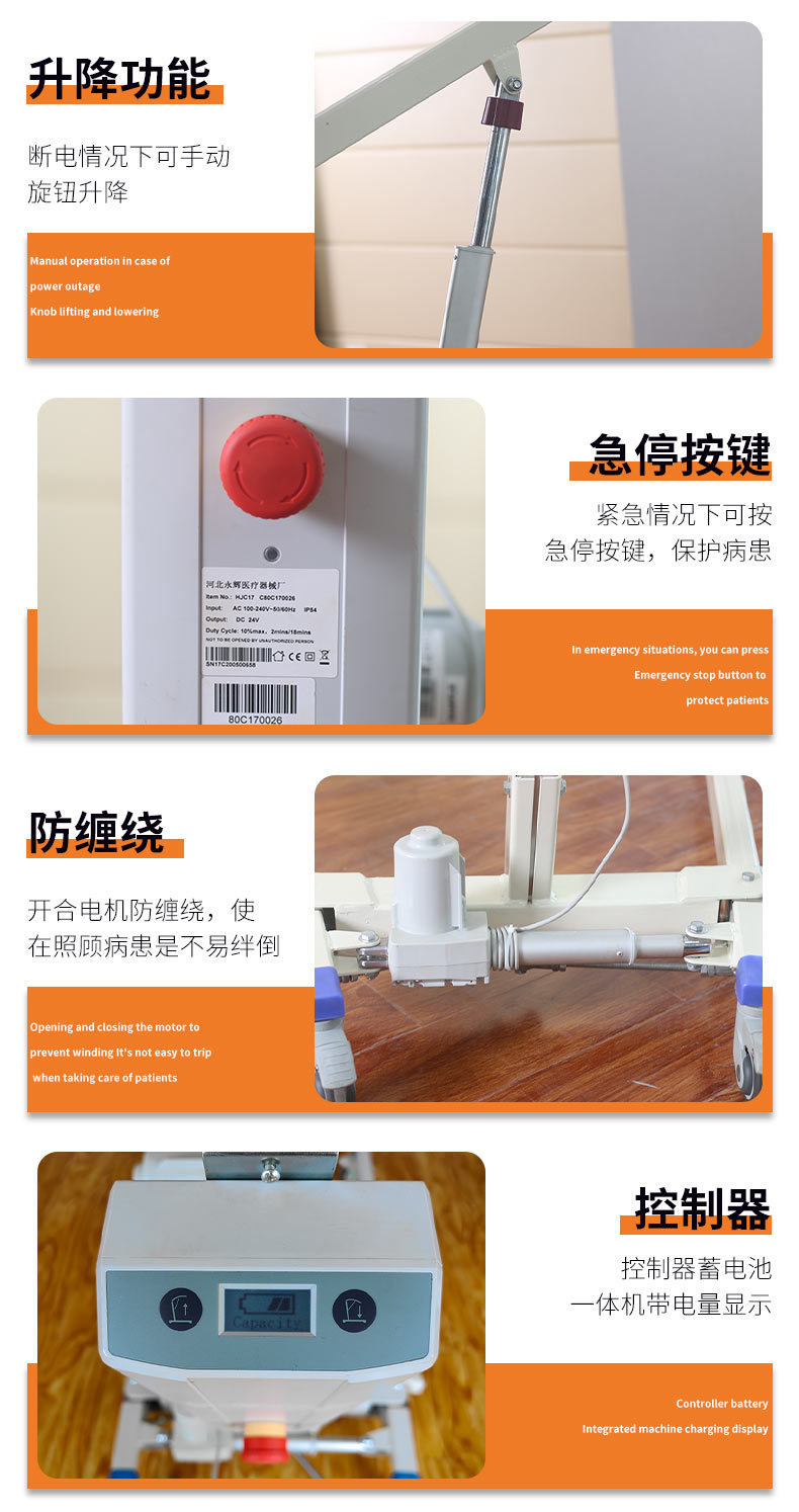 功能:電動腿部開合、電動升降、手動旋鈕式升降